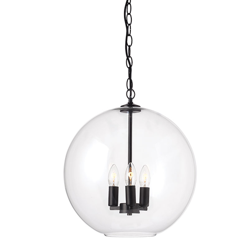 Φωτιστικό οροφής της εταιρείας Aca Decor σε μίνιμαλ στυλ. Είναι κατασκευασμένο από μεταλλικό σκελετό σε μαύρο ματ χρώμα και διαφανή γυάλινη μπάλα. Η βάση τοποθέτησης είναι μαύρη ματ και το καλώδιο είναι κατασκευασμένο από μαύρο PVC. Τύπος ντουί: 3xE14 και θέσεις για τρεις λαμπτήρες έως 40W έκαστος (δεν συμπεριλαμβάνονται).