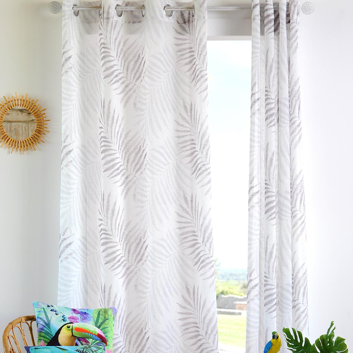 Κουρτίνα εσωτερικού χώρου σε γκρι χρώμα και tropical σχέδιο. Κατασκευασμένη από 100% polyester με ενσωματωμένα τρουκς για εύκολη τοποθέτηση. Το ύφασμα είναι χαμηλής σκίασης. Διακοσμήστε την σε όποιο χώρο του σπιτιού σας επιθυμείτε και δημιουργήστε ένα ξεχωριστό στυλ.