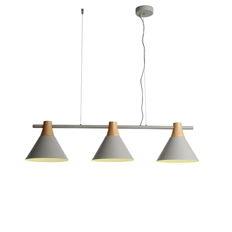 Φωτιστικό οροφής με ράγα της εταιρείας Aca Decor σε μίνιμαλ στυλ. Το φωτιστικό και η βάση τοποθέτησης είναι κατασκευασμένα από μέταλλο σε γκρι ματ χρώμα με ξύλινες λεπτομέρειες σε φυσική απόχρωση. Η εσωτερική επιφάνεια των καπέλων είναι λευκή. Υπάρχει δυνατότητα αυξομείωσης του συνολικού ύψους έως 120εκ. μέσω του καλωδίου και των 2 μεταλλικών αναρτήσεων. Διαθέτει υφασμάτινο καλώδιο σε γκρι χρώμα. Τύπος ντουί: 3xE27 και θέσεις για 3 λαμπτήρες έως 60W (δεν συμπεριλαμβάνονται).