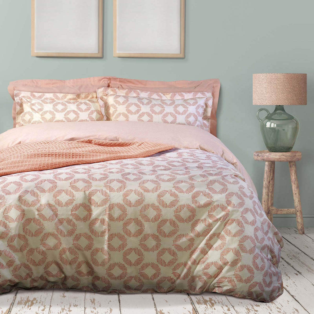 Κουβερλί μονό με μοντέρνο σχέδιο σε εκρού χρώμα με σομόν λεπτομέρειες. Το εξωτερικό ύφασμα είναι κατασκευασμένο από 100% βαμβακερό ύφασμα, 160 κλωστών, που προσφέρει ανθεκτικότητα, απαλή αφή και ευκολία στο σιδέρωμα ενώ η γέμιση είναι από πολυεστερική βάτα. Το κουβερλί είναι διπλής όψης καθώς από την μια μεριά έχει το σχέδιο του πανωσέντονου, ενώ από την άλλη μεριά έχει το σχέδιο του κατωσέντονου. Ιδανικό σκέπασμα για τους καλοκαιρινούς μήνες.
