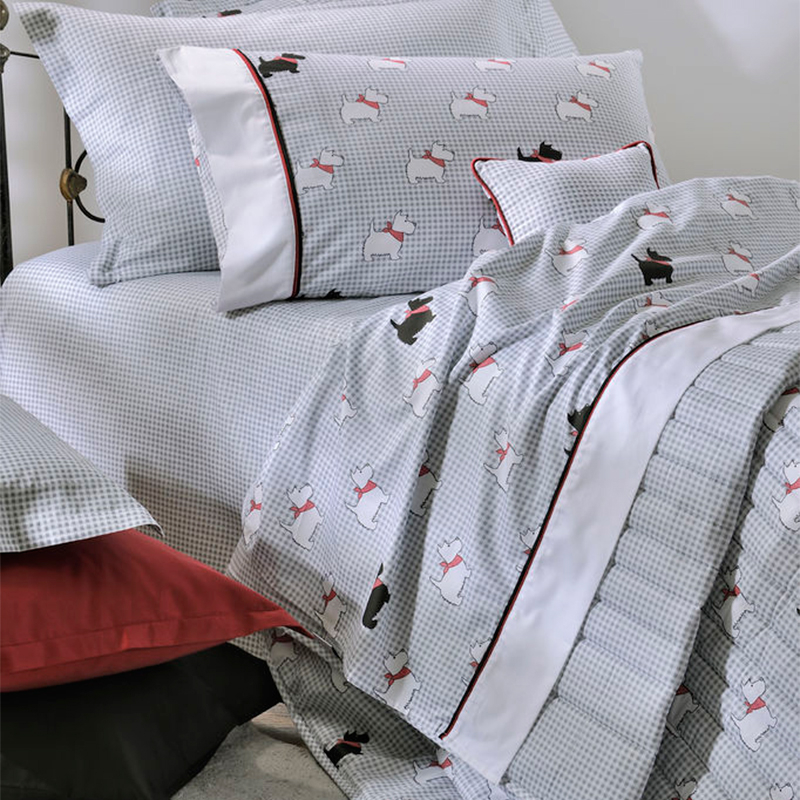 Υπέρδιπλη παπλωματοθήκη με καρό γκρι φόντο, σχέδιο ζωάκια και μαύρες-κόκκινες λεπτομέρειες από την εταιρεία Down Town. Η ποιότητά της από 100% βαμβακοσατέν 220 κλωστών προσφέρει απαλή αίσθηση και ευκολία στο σιδέρωμα. Aπό την μια μεριά έχει το σχέδιο του πανωσέντονου και από την άλλη το σχέδιο του κατωσέντονου. Στο σετ περιλαμβάνονται οι μαξιλαροθήκες φάκελος με το σχέδιο του πανωσέντονου.