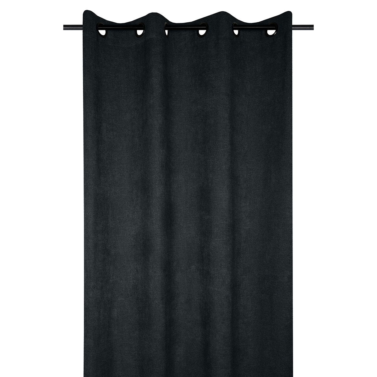 Κουρτίνα εσωτερικού χώρου σε μαύρο χρώμα και μονόχρωμη. Είναι κατασκευασμένη από 100% polyester με ενσωματωμένα τρουκς για εύκολη τοποθέτηση. Το ύφασμα είναι μέτριας σκίασης που δεν επιτρέπει να περάσει στον χώρο πολύ φως.