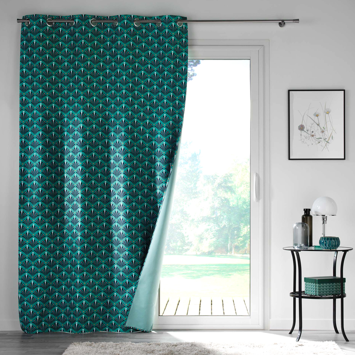 Κουρτίνα blackout με πετρόλ φόντο και μπλε μοντέρνο σχέδιο. Το ύφασμά της είναι 100% polyester, ενώ η πίσω πλευρά που έχει κατεύθυνση προς το παράθυρο διαθέτει επένδυση από υλικό TPU που προσφέρει πλήρη συσκότιση. Στο επάνω μέρος διαθέτει τρουκς κρεμάσματος με διάμετρο 4cm για εύκολη τοποθέτηση. Συνδυάστε το χρώμα και το ύφος της κουρτίνας με τον χώρο σας και ανανεώστε την διακόσμησή του.