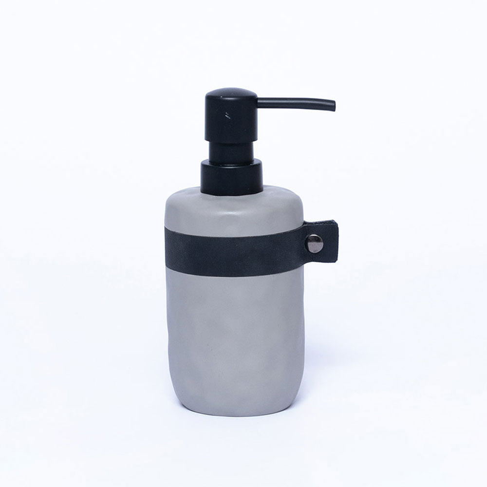 Ντισπένερ για το κρεμοσάπουνο του μπάνιου από την εταιρεία Palamaiki. Είναι κατασκευασμένο από polyresin σε γκρι απόχρωση με μαύρη λεπτομέρεια δερματίνης. Συνδυάστε το με τα υπόλοιπα αξεσουάρ της συλλογής για ένα ολοκληρωμένο αποτέλεσμα στο μπάνιο σας.
