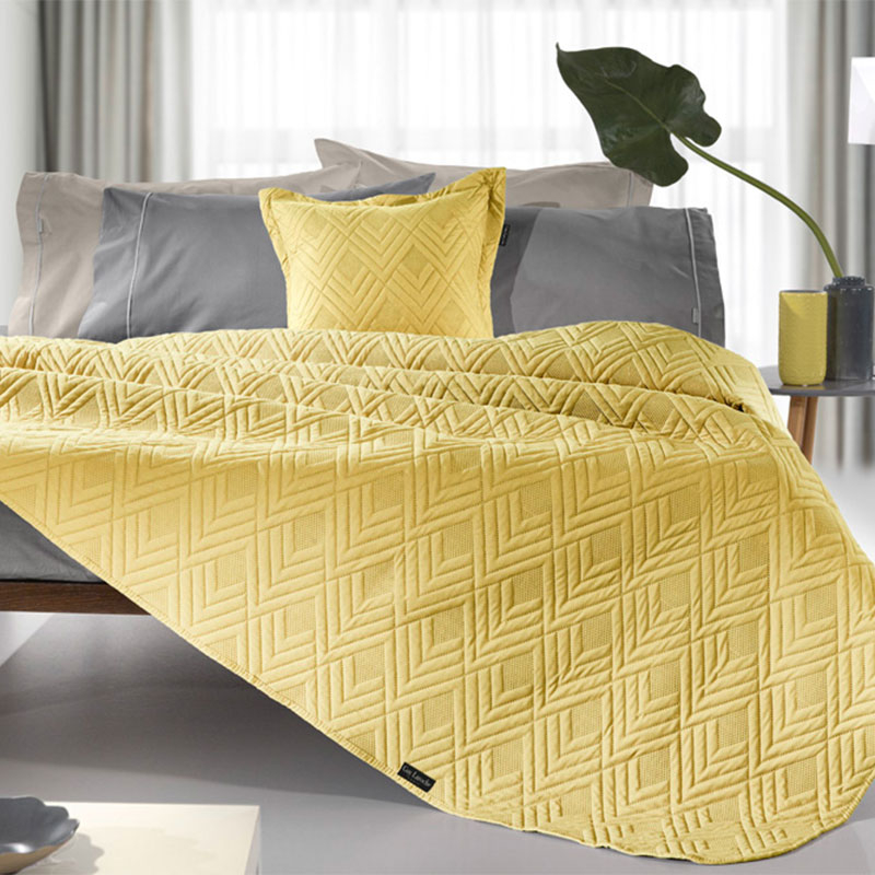 Κουβερλί υπέρδιπλο με ανάγλυφο γεωμετρικό σχέδιο και λαχανί χρώμα από την εταιρεία Guy Laroche. Το εξωτερικό ύφασμα είναι κατασκευασμένο από 100% microfiber ενώ εσωτερικά διαθέτει λεπτή πολυεστερική βάτα, που το καθιστά ιδανικό ανοιξιάτικο και καλοκαιρινό σκέπασμα. Το σετ περιλαμβάνει και την μαξιλαροθήκη oxford 50x50 με φερμουάρ και ίδιο σχέδιο με το κουβερλί, για ένα ολοκληρωμένο σετ στο δωμάτιο σας.