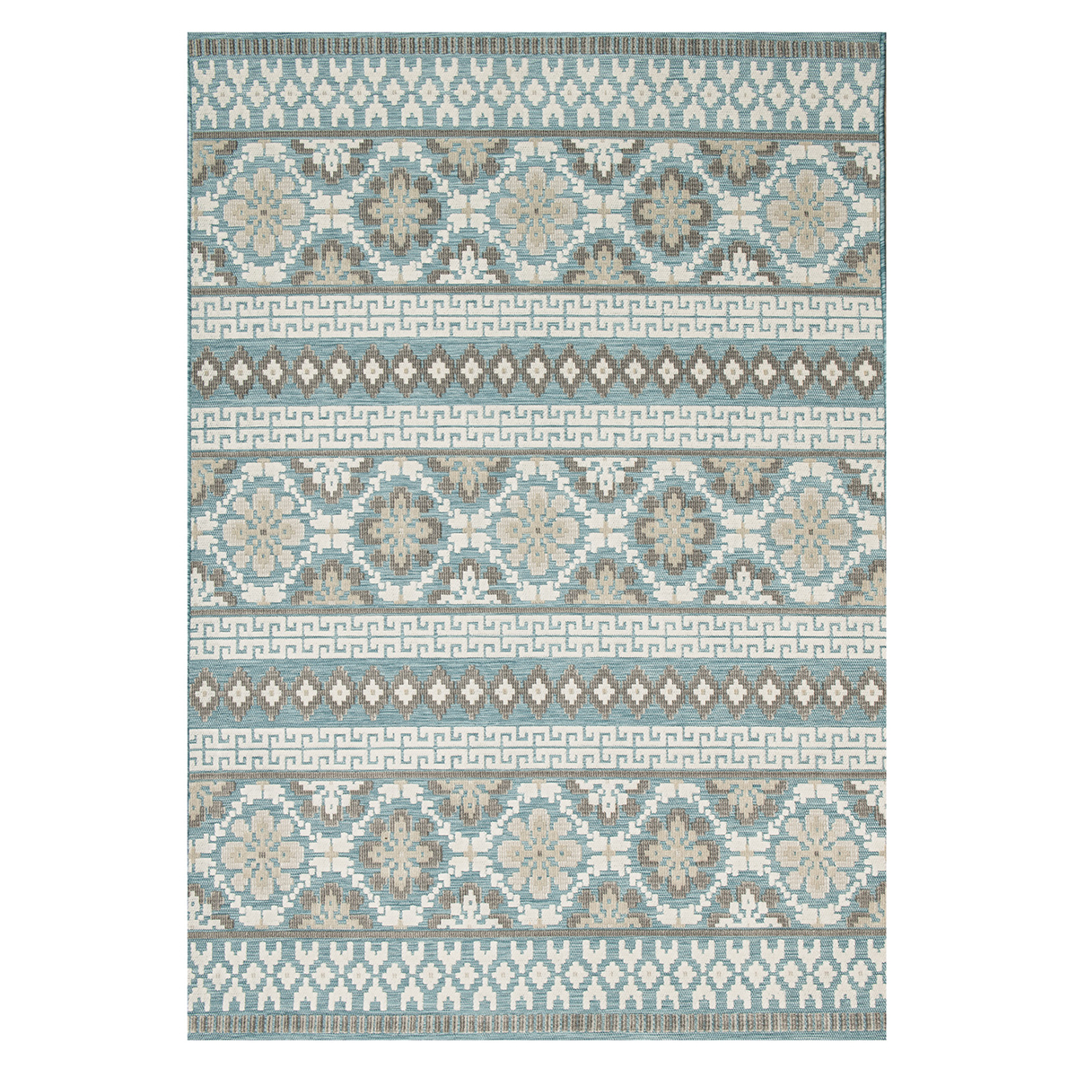 Μηχανοποίητο χαλί 77x150 από την συλλογή Garden της εταιρείας New Plan. Σε γαλάζιες και εκρού αποχρώσεις με καφέ λεπτομέρειες. Πρόκειται για εξαιρετική ψάθα ιδανική για τους καλοκαιρινούς μήνες και ξεχωρίζει για το εντυπωσιακό μοντέρνο σχέδιο. Μπορεί να τοποθετηθεί σε όλους τους χώρους του σπιτιού, αναβαθμίζοντας την αισθητική τους. Είναι κατασκευασμένο με ανεξίτηλα νήματα εξαιρετικής ποιότητας, με σύνθεση 100% πολυπροπυλένιο και βάρος 1.250gsm. Το ύψος πέλους του χαλιού είναι 8mm, ενώ η πυκνότητά του ανέρχεται στους 320.000 κόμπους/τ.μ. Η επιφάνεια του σχηματίζει έντονο ανάγλυφο. Είναι αντιστατικό άρα το σκούπισμα με ηλεκτρική σκούπα είναι εύκολο και αποτελεσματικό. Τα χαλιά της σειράς Garden είναι υποαλλεργικά και φιλικά προς την υγεία και το περιβάλλον.