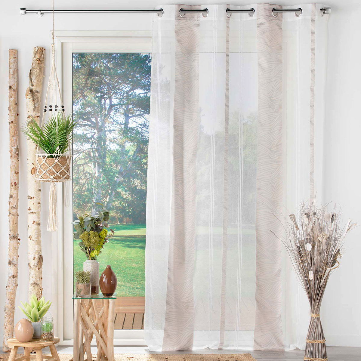 Κουρτίνα σε λευκό χρώμα και ριγέ σχέδιο με σομόν μοντέρνες γραμμές. Το ύφασμα είναι από 100% polyester και είναι χαμηλής σκίασης. Στο επάνω μέρος διαθέτει τρουκς κρεμάσματος με διάμετρο 4cm για εύκολη τοποθέτηση. Συνδυάστε το χρώμα και το ύφος της κουρτίνας με τον χώρο σας και ανανεώστε την διακόσμησή του.