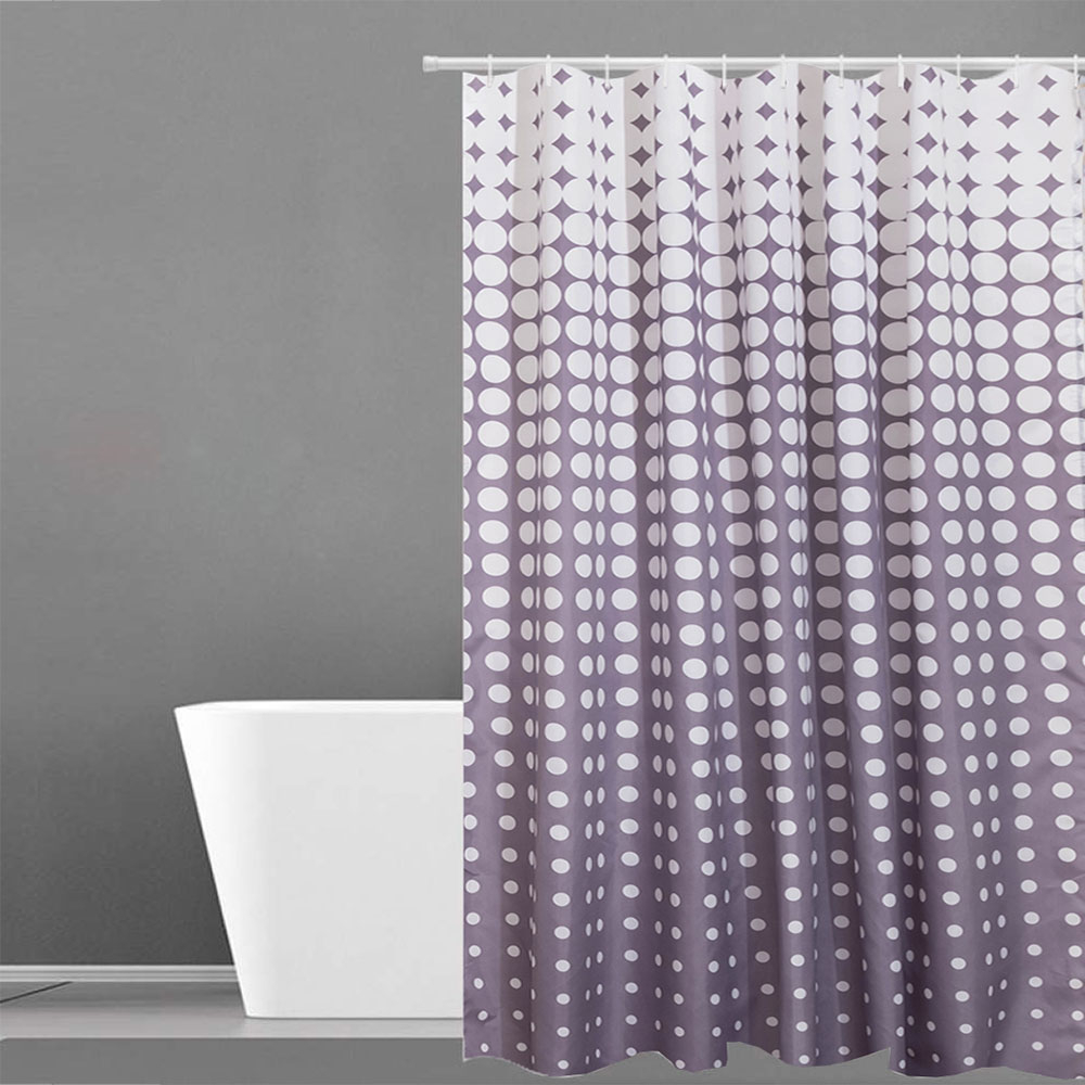 Κουρτίνα μπάνιου σε λευκό-γκρι χρώμα και πουά από την εταιρεία Anna Riska. Με 12 ενισχυμένες θηλιές και κρίκους στερέωσης. Κατασκευασμένη από ειδικά επεξεργασμένο υδροαπωθητικό ύφασμα σύνθεσης από 100% polyester.