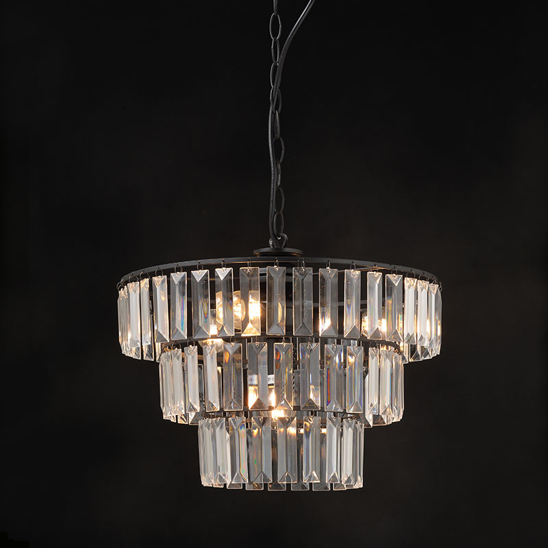 Φωτιστικό οροφής της εταιρείας Aca Decor σε μοντέρνο στυλ. Ο σκελετός είναι κατασκευασμένος από μέταλλο σε μαύρο χρώμα και είναι διακοσμημένο με διάφανους κρυστάλλους. Υπάρχει δυνατότητα αυξομείωσης του συνολικού ύψους έως 102εκ. μέσω του μαύρου καλωδίου και της αλυσίδας ανάρτησης. Διαθέτει μαύρη μεταλλική βάση τοποθέτησης. Τύπος ντουί: 4xE14 και θέσεις για 3 λαμπτήρες έως 40W έκαστος (δεν συμπεριλαμβάνονται).