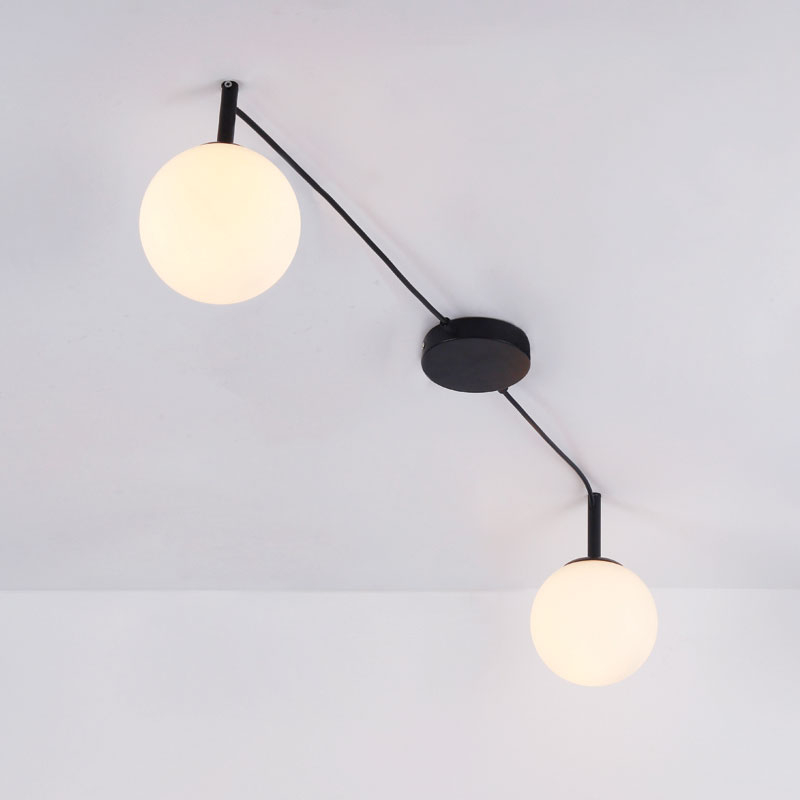 Φωτιστικό οροφής της εταιρείας Aca Decor σε μοντέρνο στυλ. Είναι κατασκευασμένο από μέταλλο σε μαύρο χρώμα. Έχει 2 γυάλινες μπάλες και 2 διαθέσιμα καλώδια μήκους 72εκ. και 45εκ. αντίστοιχα. Το μέγεθος και το σχήμα του φωτιστικού μπορεί να προσαρμοστεί μέσω των 2 καλωδίων που κόβονται στο επιθυμητό μήκος. Διαθέτει μαύρη μεταλλική βάση τοποθέτησης. Τύπος ντουί: 2xE14 και θέσεις για 2 λαμπτήρες έως 40W έκαστος (δεν συμπεριλαμβάνονται).
