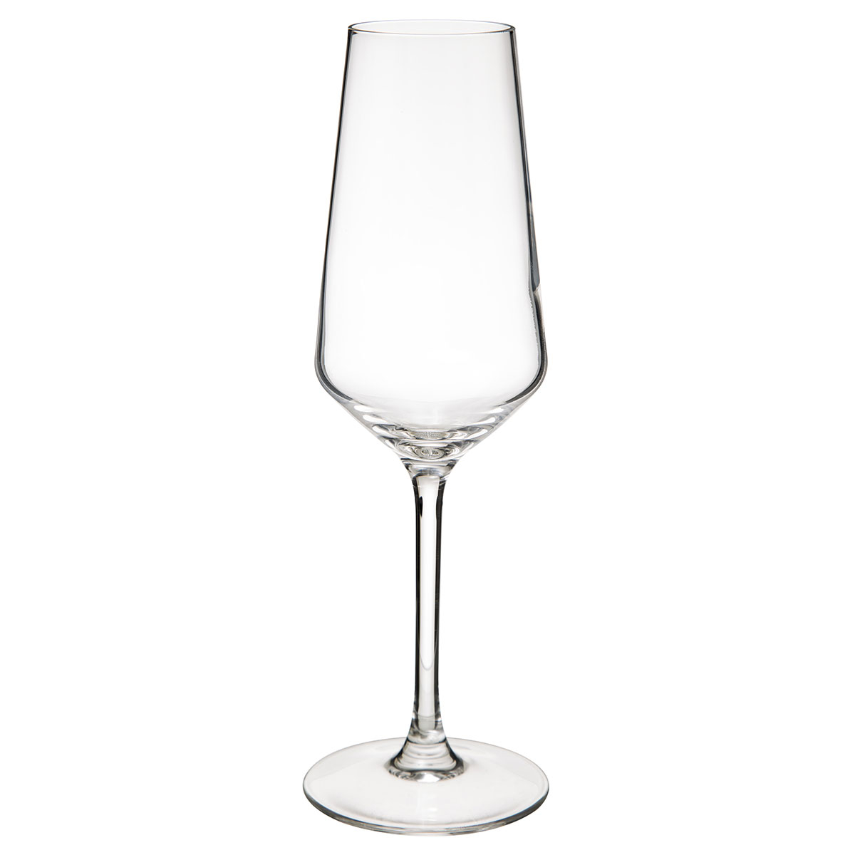 Ποτήρι σαμπάνιας σε σχήμα flute σε διάφανη απόχρωση και κλασικό σχεδιασμό. Είναι κατασκευασμένο από γυαλί και έχει χωρητικότητα 230ml. Ιδανικό ποτήρι για τη σαμπάνια σας.