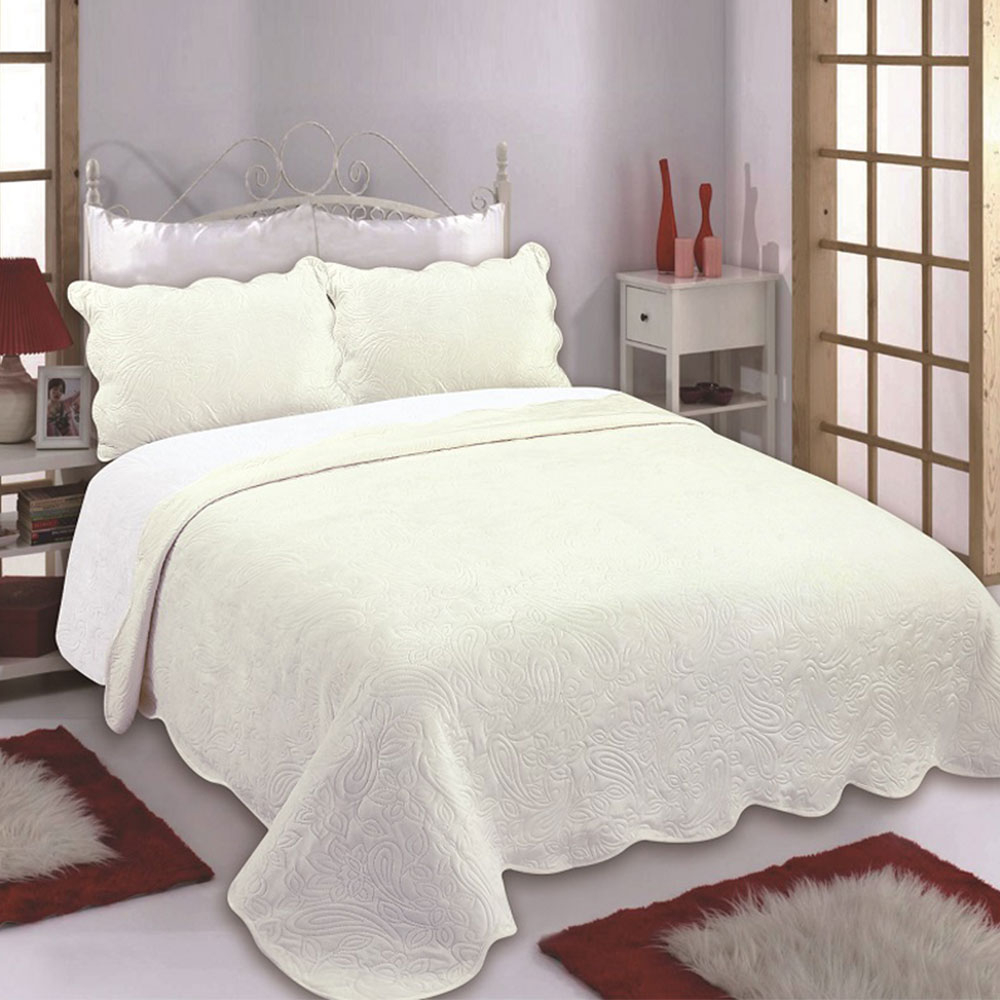 Υπέρδιπλο κουβερλί σε ιβουάρ χρώμα και ανάγλυφα λαχούρια από την εταιρία Silk Fashion. Η επάνω πλευρά είναι supersoft τύπου βελουτέ 180gsm, η κάτω πλευρά είναι υφασμάτινη σύνθεσης 50% βαμβάκι-50% polyester 65gsm και η γέμιση είναι λεπτή πολυεστερική βάτα 100gsm. Συνολικό βάρος 345gsm. Ιδανικό σκέπασμα για την άνοιξη και το φθινόπωρο ενώ μπορεί να χρησιμοποιηθεί και σαν διακοσμητικό στοιχείο στο κρεβάτι σας.