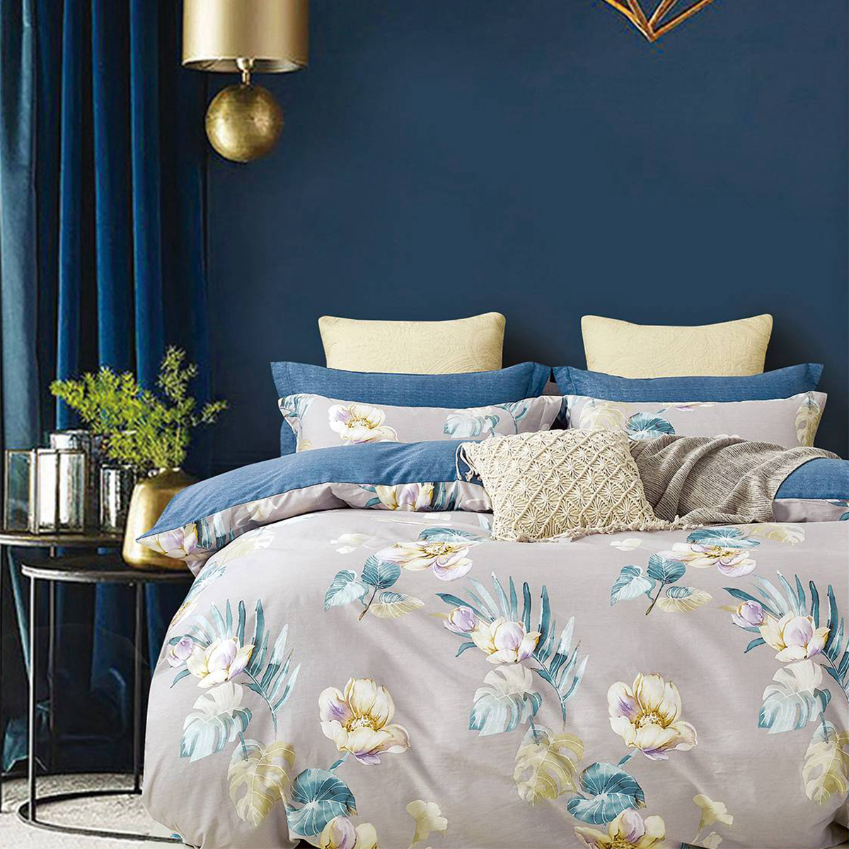 Κουβερλί υπέρδιπλο σετ σε μπεζ χρώμα, κίτρινες-πετρόλ λεπτομέρειες και φλοράλ σχέδιο από την εταιρία Viopros. Το εξωτερικό του ύφασμα είναι κατασκευασμένο από 100% βαμβακοσατέν 200 κλωστών που το καθιστά εξαιρετικά μαλακό και ανθεκτικό και η γέμιση από πολυεστερική βάτα. Το κουβερλί είναι διπλής όψεως, καθώς από τη μία πλευρά έχει το σχέδιο του πανωσέντονου και από την άλλη το σχέδιο του κατωσέντονου. Στο σετ περιλαμβάνονται οι μαξιλαροθήκες oxford με το σχέδιο του πανωσέντονου. **Το σχέδιο στις μαξιλαροθήκες ενδέχεται να διαφέρει από αυτό της φωτογραφίας καθώς η εταιρεία παράγει μαξιλαροθήκες από όλο το σχέδιο του υφάσματος και τις συσκευάζει με τυχαία σειρά**