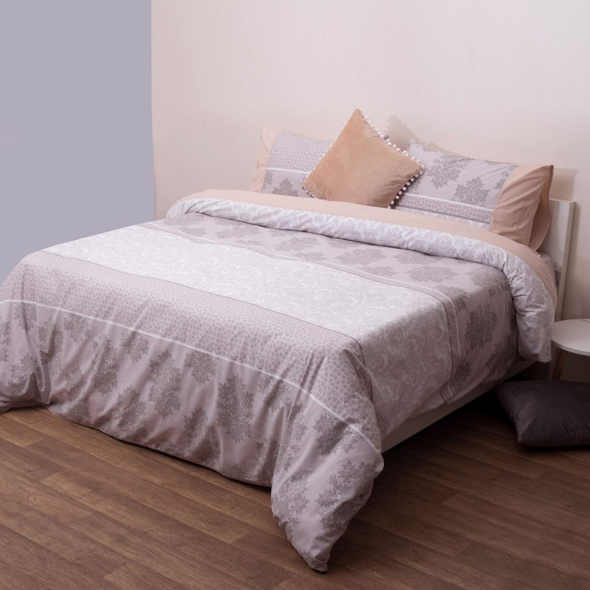 Κουβερλί υπέρδιπλο από την εταιρεία Anna Riska με μοντέρνο σχέδιο σε γκρι-ανθρακί-λευκές αποχρώσεις. Το ύφασμα του έχει σύνθεση από 100% βαμβάκι περκάλι 170 κλωστών που προσφέρει απαλότητα και ανθεκτικότητα. Εσωτερικά έχει λεπτή πολυεστερική βάτα. Ιδανικό για τους ανοιξιάτικους και καλοκαιρινούς μήνες. Το κουβερλί είναι διπλής όψεως, με την μία πλευρά να έχει το σχέδιο του πανωσέντονου και την άλλη το σχέδιο του κατωσέντονου. Η μαξιλαροθήκη είναι φάκελος με το σχέδιο του πανωσέντονου. **Το σχέδιο στην μαξιλαροθήκη ενδέχεται να διαφέρει από αυτό της φωτογραφίας καθώς η εταιρεία παράγει μαξιλαροθήκες από όλο το σχέδιο του υφάσματος και τις συσκευάζει με τυχαία σειρά.**