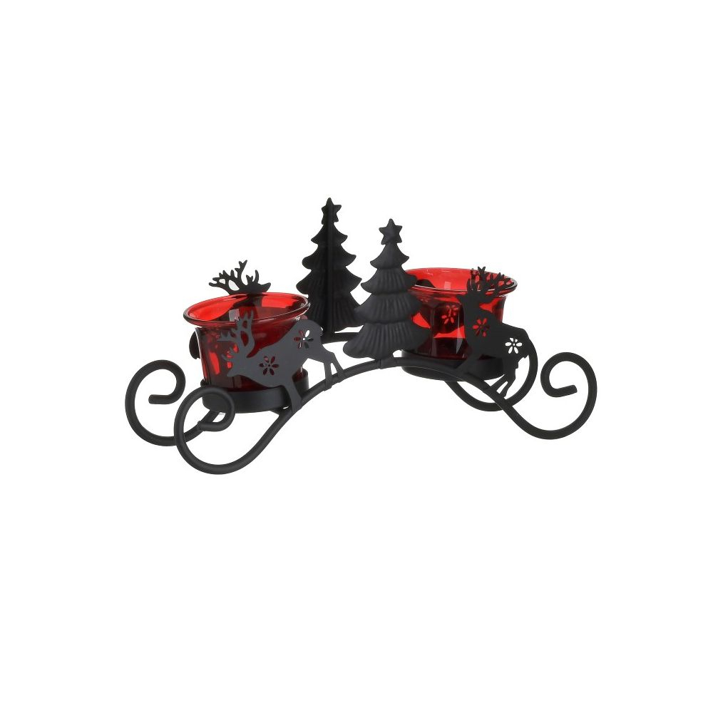 Χριστουγεννιάτικο κηροπήγιο για ρεσώ της εταιρείας InArt. Είναι μεταλλικό, σε μαύρο χρώμα και έχει 2 ποτηράκια σε κόκκινο χρώμα για να τοποθετήσετε τα κεριά. Τοποθετήστε το στην τραπεζαρία ή το τραπεζάκι του σαλονιού για να ολοκληρώσετε την χριστουγεννιάτικη διακόσμησή σας.