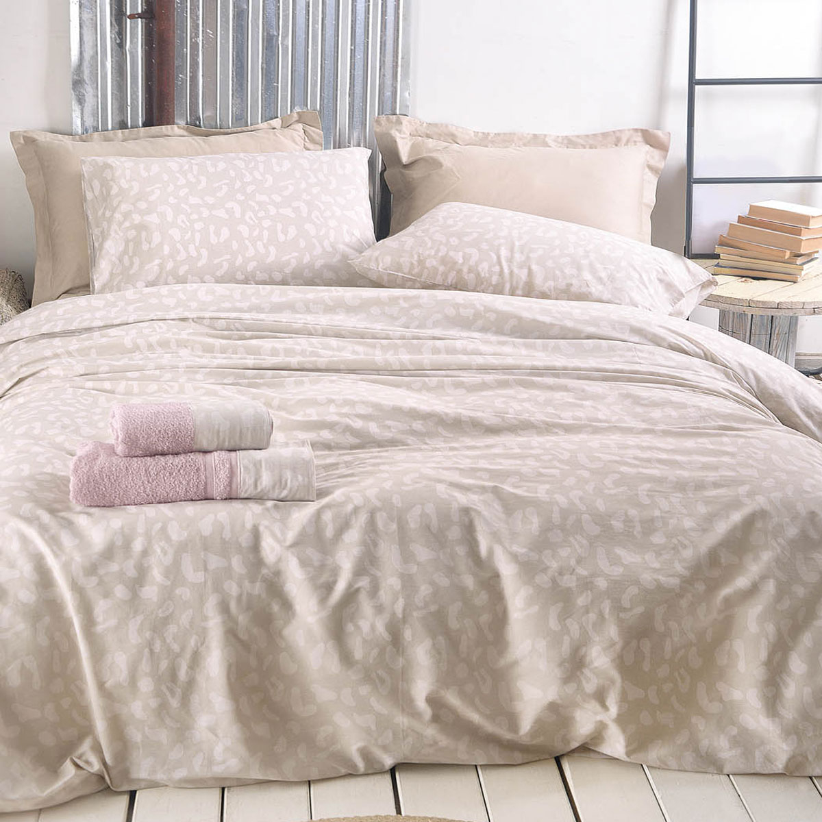 Υπέρδιπλη παπλωματοθήκη με φερμουάρ σε μπεζ χρώμα και animal print σχέδιο από την εταιρεία Rythmos. Το ύφασμα είναι 100% βαμβάκι 144 κλωστών που το καθιστά απαλό και ανθεκτικό. Στο σετ περιλαμβάνεται η μαξιλαροθήκη φάκελος με το σχέδιο του πανωσέντονου. Συνδυάστε το με τα υπόλοιπα είδη της ίδιας σειράς για ένα ολοκληρωμένο αποτέλεσμα.