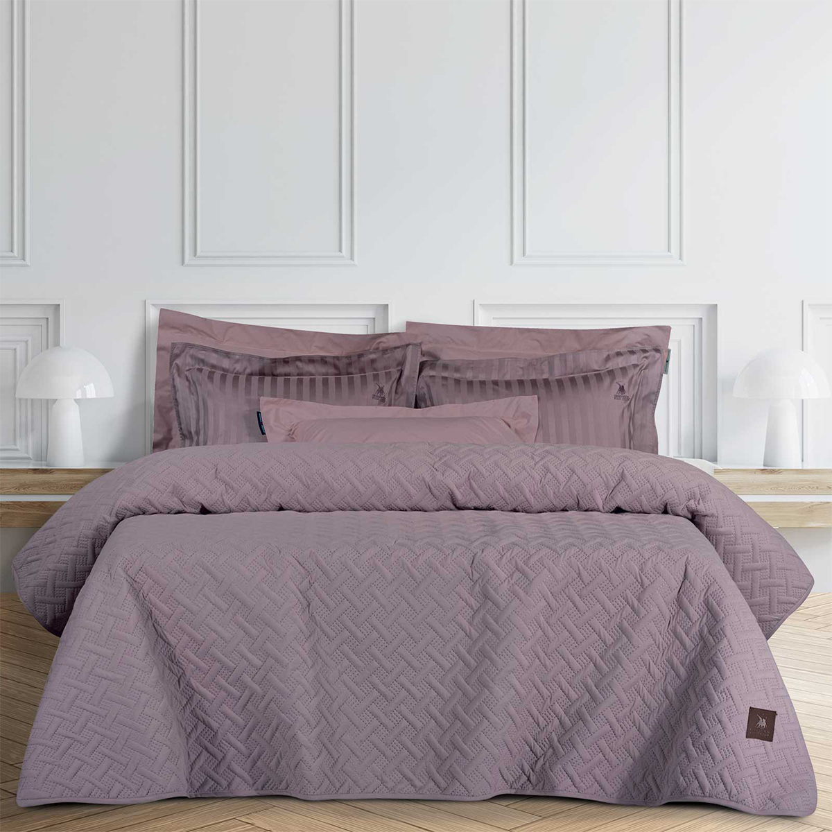 Υπέρδιπλο κουβερλί σε λιλά χρώμα και ανάγλυφο μοντέρνο σχέδιο από τον οίκο Greenwich Polo Club. Το εξωτερικό ύφασμα είναι από 100% microfiber και εσωτερικά έχει λεπτή πολυεστερική βάτα. Ιδανικό ανοιξιάτικο και καλοκαιρινό σκέπασμα.
