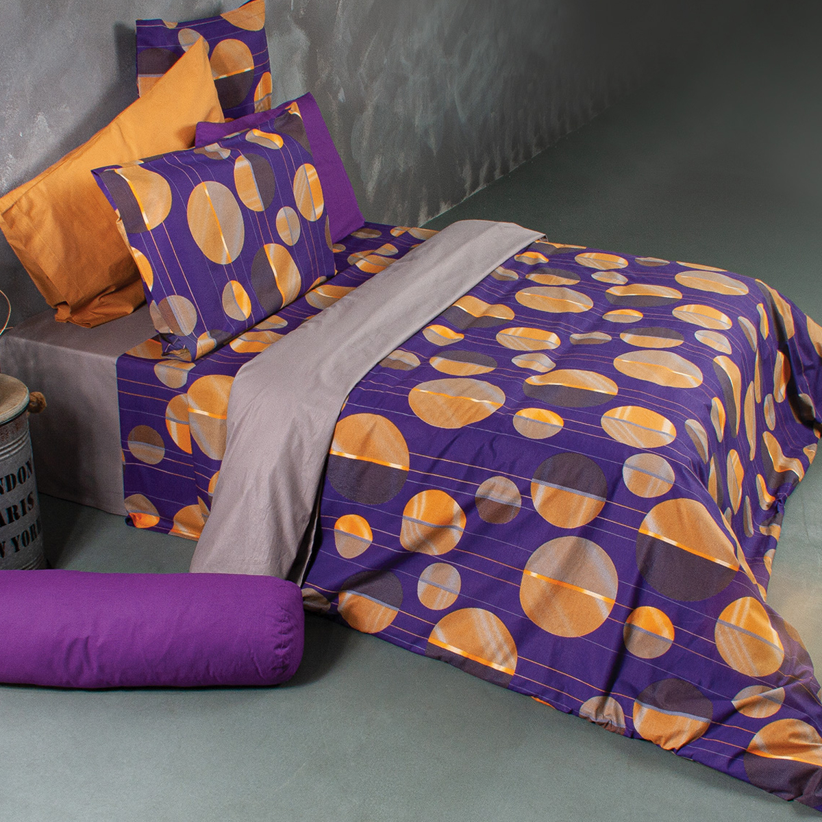 Παπλωματοθήκη υπέρδιπλη σε μωβ χρώμα, με πορτοκαλί λεπτομέρειες και μοντέρνο σχέδιο από την εταιρία Sb Home. Το ύφασμα είναι από 100% βαμβάκι 152 κλωστών που την καθιστά απαλή και ανθεκτική. Διαθέτει φερμουάρ στο κλείσιμο. Συνδυάστε την με τα υπόλοιπα είδη της ίδιας σειράς για ένα ολοκληρωμένο αποτέλεσμα.