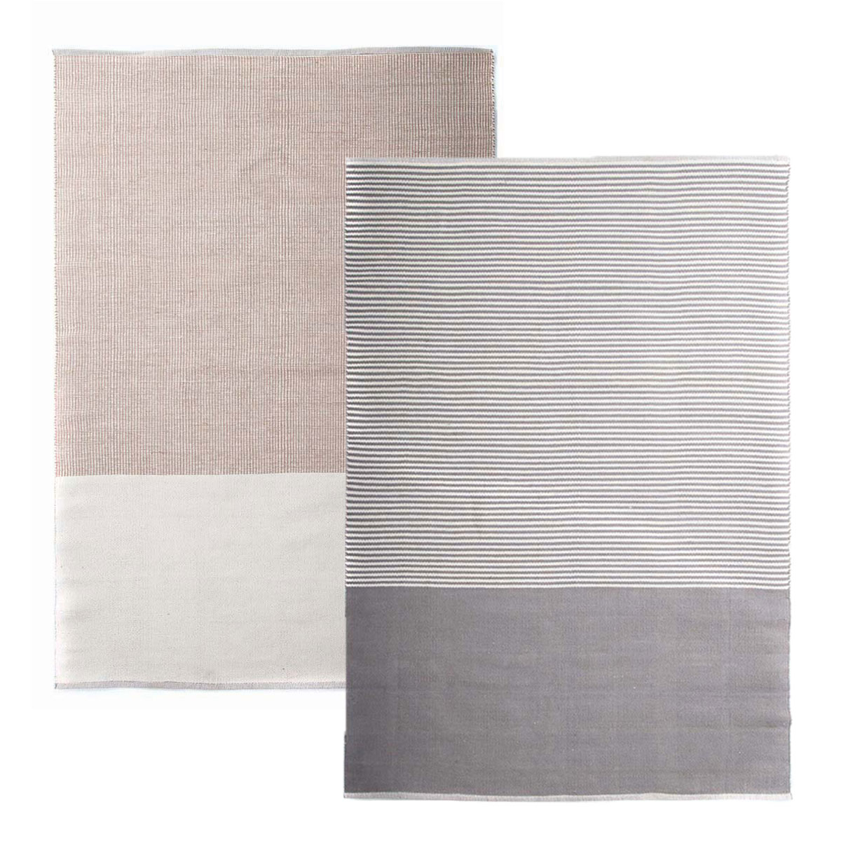 Χειροποίητο χαλί 4 εποχών 2 όψεων 160x230 από τη συλλογή Urban Cotton Kilim της εταιρείας Royal Carpet. Είναι κατασκευασμένο από νήματα 100% βαμβακερής ποιότητας. Η μία πλευρά έχει γκρι φόντο με λευκό ριγέ σχέδιο ενώ η άλλη έχει εκρού φόντο με μπεζ-γκρι λεπτομέρειες. Εύκολο στη χρήση και ελαφρύ χαλί θα απογειώσει τον χώρο σας με την ποιότητα κατασκευής και τις χρωματικές επιλογές. Το βάρος του χαλιού είναι 1360gsm. Ιδανικό για όλες τις εποχές του χρόνου. Μπορεί να τοποθετηθεί σε όλους τους χώρους του σπιτιού προσδίδοντας μία μοντέρνα πινελιά. Είναι ελαφρύ χαλί ανθεκτικό στην καθημερινή χρήση και εύκολο ως προς τον καθαρισμό του. Είναι αντιστατικό επομένως δεν μαγνητίζονται χνούδια, μικροσωματίδια και σκόνη στην επιφάνειά του, ενώ το σκούπισμα με ηλεκτρική σκούπα είναι εύκολο. Δεν εμπεριέχει επικίνδυνες για τον ανθρώπινο οργανισμό αλλεργιογόνες ή χημικές βλαβερές ουσίες. Τα χαλιά της εταιρείας Royal Carpet είναι φιλικά προς την υγεία και το περιβάλλον, καθώς είναι υποαλλεργικά και οικολογικά.