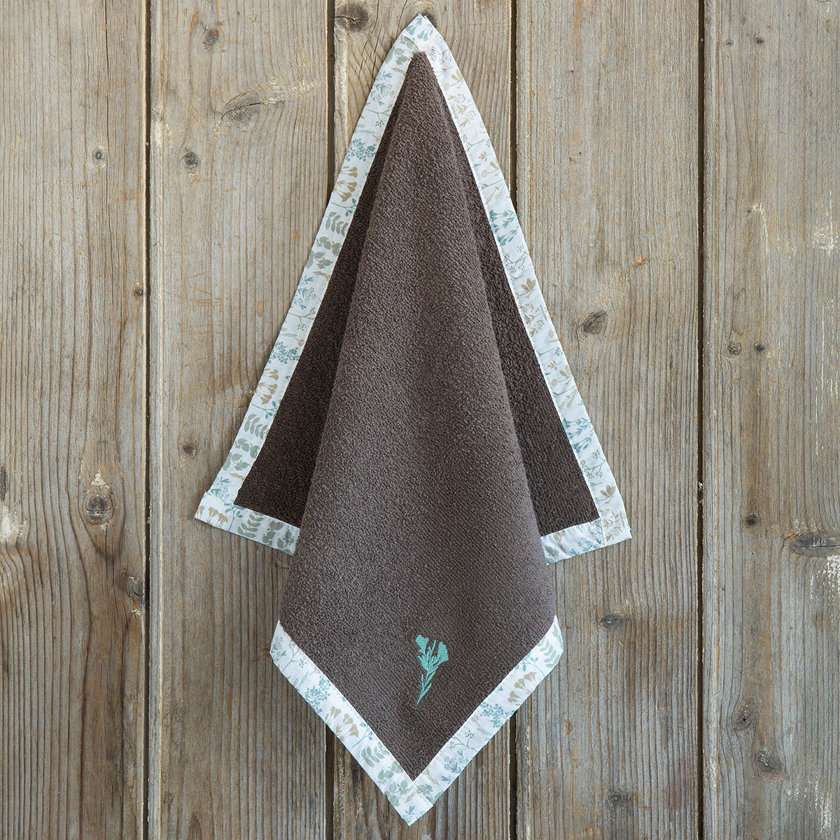 Πετσέτα κουζίνας από την εταιρεία Nima σε ανθρακί απόχρωση. Είναι φροτέ, από 100% βαμβάκι και διαθέτει λευκό ρέλι περιμετρικά και κέντημα. Είναι απορροφητική και πολύ πρακτική για χρήση στην κουζίνα.