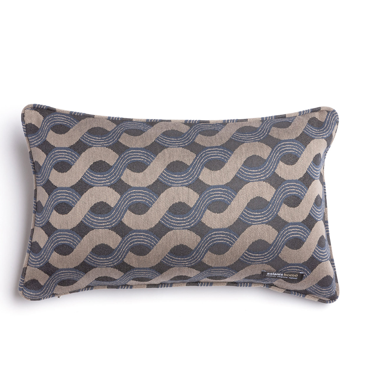 Διακοσμητική μαξιλαροθήκη σε μπεζ χρώμα, με μπλε λεπτομέρειες και μοντέρνο σχέδιο από την εταιρεία Aslanis Home. Το jacquard ύφασμα είναι από 50% βαμβάκι 50% chenille, που την καθιστά ιδιαίτερα απαλή και ανθεκτική. Συνδυάστε την με τα υπόλοιπα είδη της ίδιας σειράς για ένα ολοκληρωμένο αποτέλεσμα.