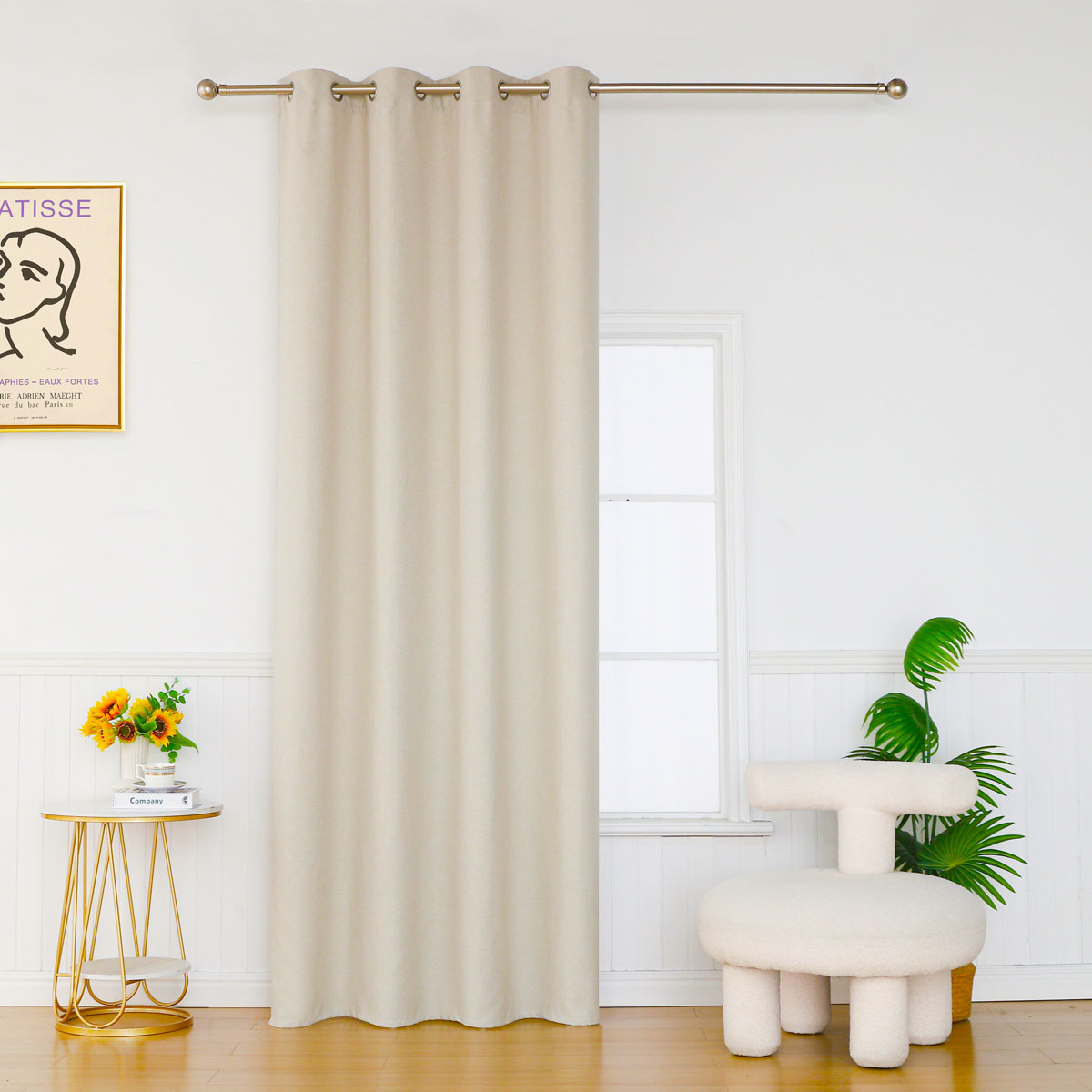 Κουρτίνα εσωτερικού χώρου, μονόχρωμη σε εκρού απόχρωση. Κατασκευασμένη από 100% polyester και ενσωματωμένα τρουκς για εύκολη τοποθέτηση. Το ύφασμα είναι υψηλής σκίασης. Διακοσμήστε την σε όποιο χώρο του σπιτιού σας επιθυμείτε και δημιουργήστε ένα ξεχωριστό στυλ.