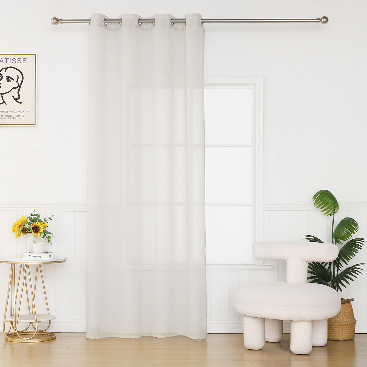 Κουρτίνα εσωτερικού χώρου, μονόχρωμη σε λευκή απόχρωση. Κατασκευασμένη από 100% polyester και ενσωματωμένα τρουκς για εύκολη τοποθέτηση. Το ύφασμα είναι χαμηλής σκίασης. Διακοσμήστε την σε όποιο χώρο του σπιτιού σας επιθυμείτε και δημιουργήστε ένα ξεχωριστό στυλ.