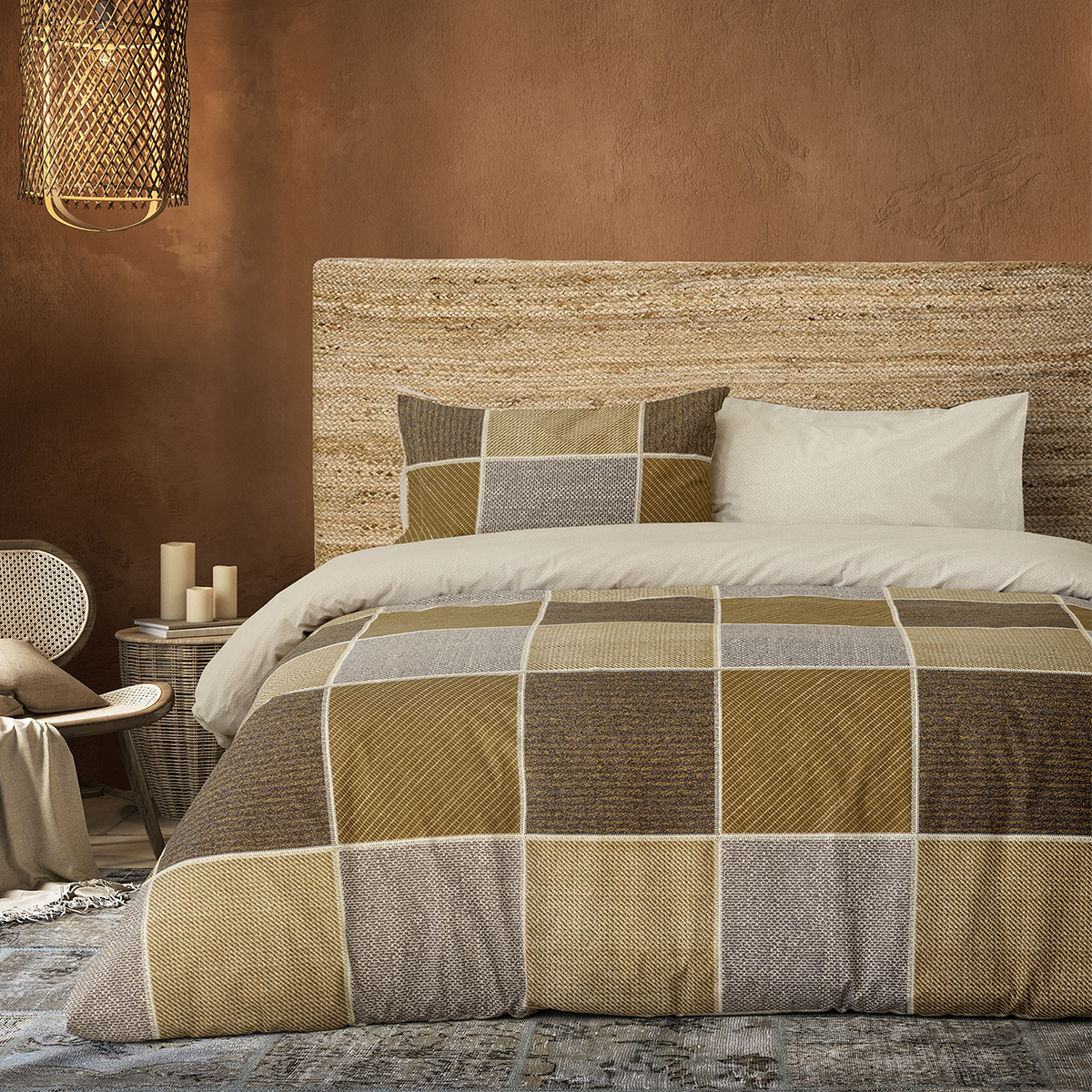 Σετ υπέρδιπλη παπλωματοθήκη διπλής όψης σε μπεζ χρώμα, με καφέ καρό λεπτομέρειες στη μια όψη ενώ η άλλη είναι σε μπεζ χρώμα από την εταιρεία Kocoon. Το ύφασμα είναι 100% βαμβάκι 144 κλωστών που την καθιστά απαλή και ανθεκτική. Στο σετ περιλαμβάνονται οι μαξιλαροθήκες φάκελος με το σχέδιο του πανωσέντονου. **Το σχέδιο στις μαξιλαροθήκες ενδέχεται να διαφέρει από αυτό της φωτογραφίας καθώς η εταιρεία παράγει μαξιλαροθήκες από όλο το σχέδιο του υφάσματος και τις συσκευάζει με τυχαία σειρά.** Συνδυάστε την με τα υπόλοιπα είδη του ίδιου σχεδίου για ένα ολοκληρωμένο αποτέλεσμα.