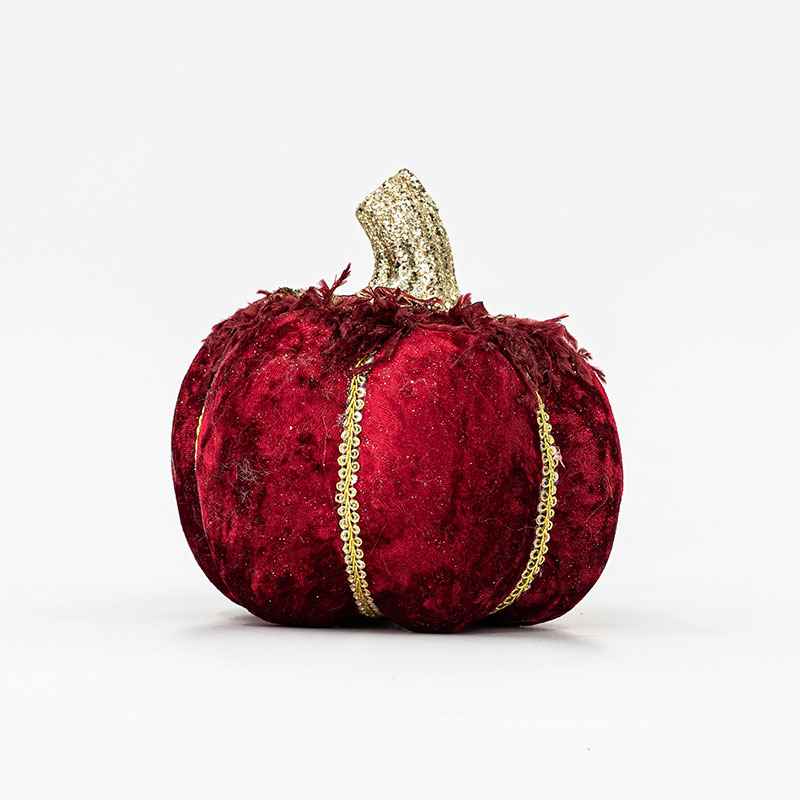 Επιτραπέζιο διακοσμητικό σε σχήμα κολοκύθας από την εταιρεία Eurolamp. Το εξωτερικό ύφασμα είναι μπορντώ βελούδο με χρυσό γκλίτερ ενώ εσωτερικά διαθέτει φελιζόλ. Eίναι ιδανική για να στολίσει όποιο χώρο του σπιτιού επιθυμείτε. Συνδυάστε τη με τα υπόλοιπα είδη της ίδιας συλλογής για ένα ολοκληρωμένο αποτέλεσμα στο χώρο σας.