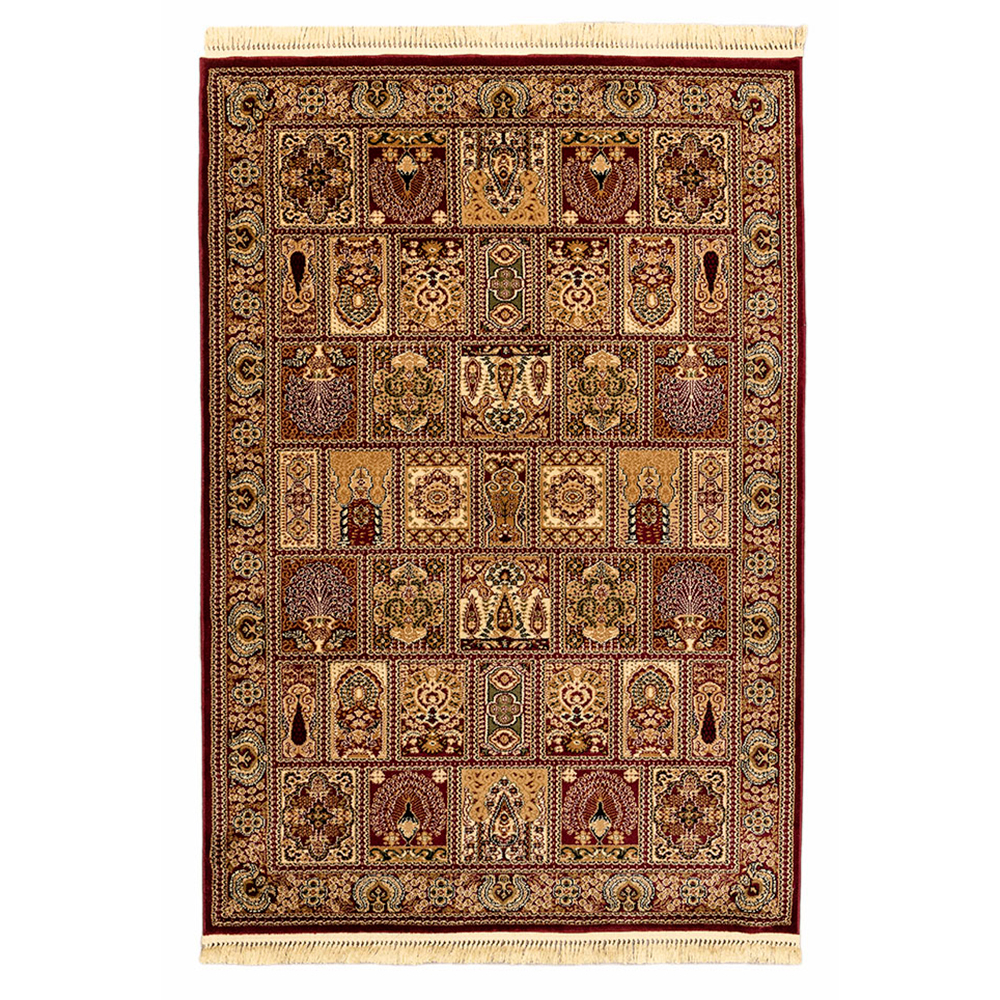 Μηχανοποίητο χαλί 160x230 από τη σειρά Persia της εταιρείας New Plan, σε μπορντώ και μπεζ αποχρώσεις. Έχει κλασικό σχέδιο και διαθέτει μακριά εκρού κρόσσια στο τελείωμα. Είναι κατασκευασμένο από 100% heatset πολυπροπυλένιο. Tο βάρος του χαλιού είναι 1.250gsm, ενώ η πυκνότητά του ανέρχεται στους 320.000 κόμπους/τ.μ. Η απαλή επιφάνεια του χαλιού σε συνδυασμό με το πέλος ύψους 12mm, εξασφαλίζουν μία μοναδική αίσθηση στο πάτημα. Το υπόστρωμα του χαλιού είναι υφαντό. Είναι αντιστατικό άρα το σκούπισμα με ηλεκτρική σκούπα είναι εύκολο και αποτελεσματικό. Τα χαλιά της εταιρείας New Plan είναι οικολογικά και υποαλλεργικά.