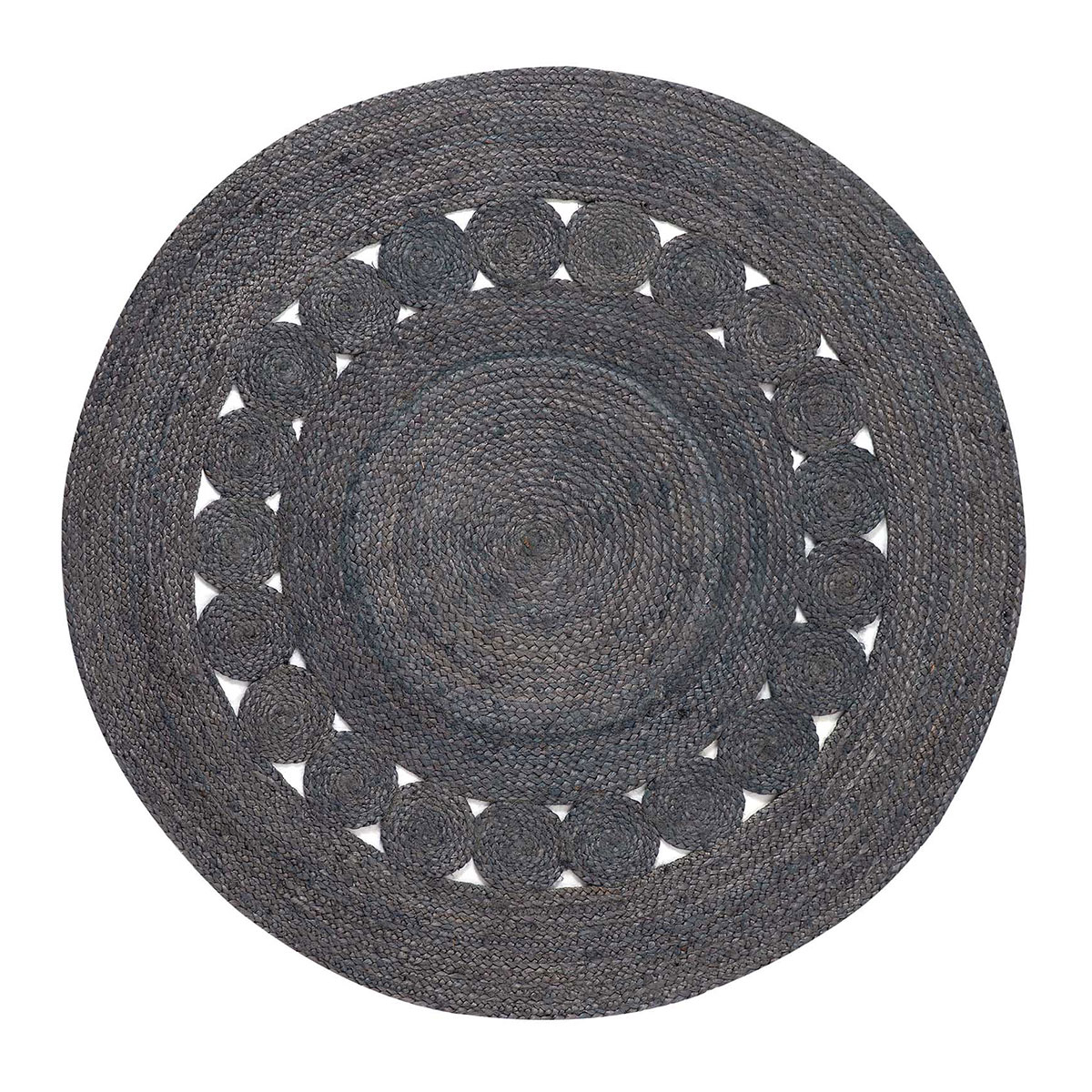 Ψάθινο στρογγυλό χαλί από την εταιρεία Silk Fashion σε ανθρακί απόχρωση. Είναι κατασκευασμένο από 100% φυσική γιούτα. Είναι ιδανικό για τους καλοκαιρινούς μήνες. Μπορεί να τοποθετηθεί σε κάθε γωνιά του σπιτιού σας αναβαθμίζοντας την αισθητική του.