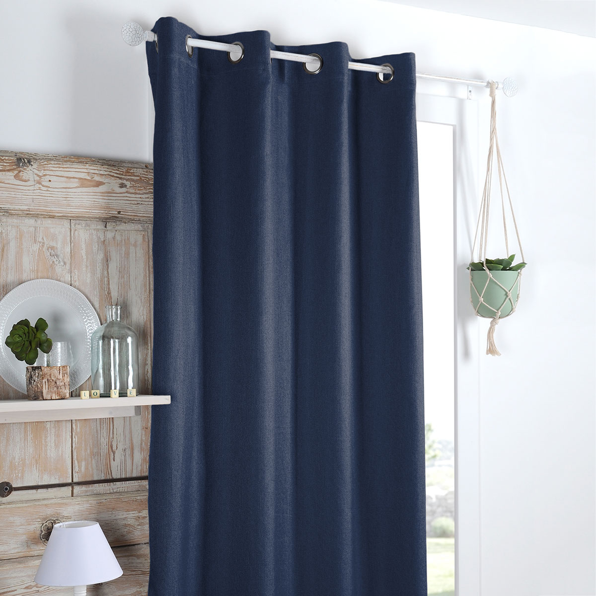 Κουρτίνα εσωτερικού χώρου σε μπλε χρώμα, ιδανική για τοποθέτηση σε παράθυρο. Είναι κατασκευασμένη από 100% polyester με ενσωματωμένα τρουκς για εύκολη τοποθέτηση. Το ύφασμα είναι υψηλής σκίασης. Διακοσμήστε την σε όποιο χώρο του σπιτιού σας επιθυμείτε και δημιουργήστε ένα ξεχωριστό στυλ.