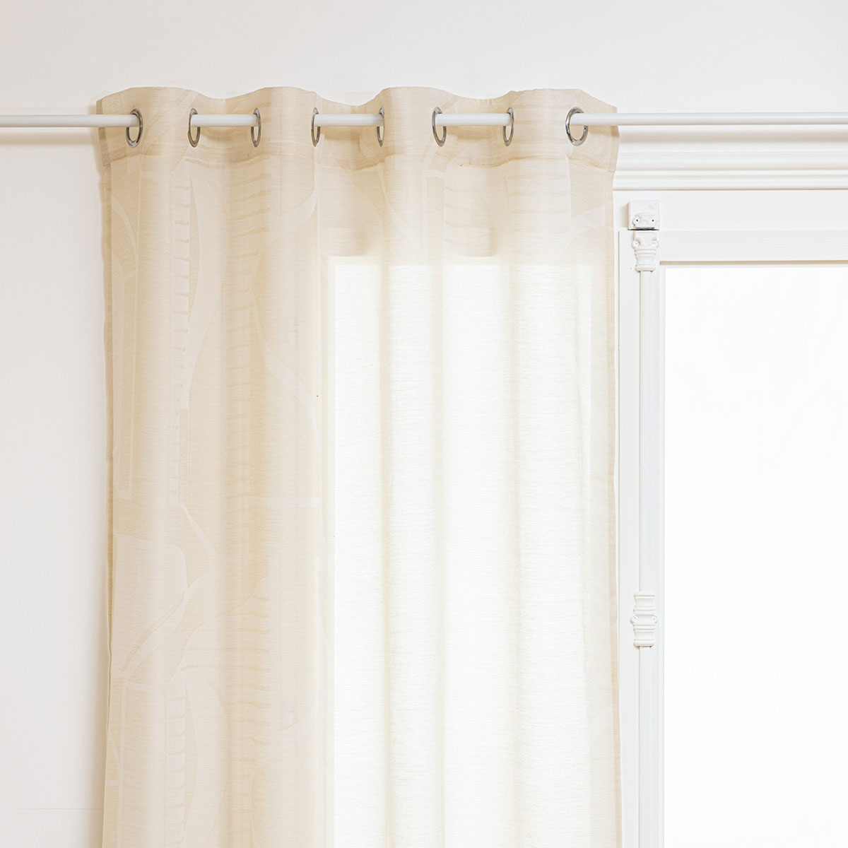 Κουρτίνα χαμηλής σκίασης σε μπεζ χρώμα με μοντέρνο σχέδιο, κατάλληλη για όλους τους χώρους του σπιτιού. Το ύφασμα είναι από 100% polyester. Στο επάνω μέρος διαθέτει 8 τρουκς κρεμάσματος για εύκολη τοποθέτηση. Το ύφασμα είναι χαμηλής σκίασης που επιτρέπει να περάσει στον χώρο πολύ φως. Συνδυάστε το χρώμα και το ύφος της κουρτίνας με τον χώρο σας και ανανεώστε την διακόσμηση του.