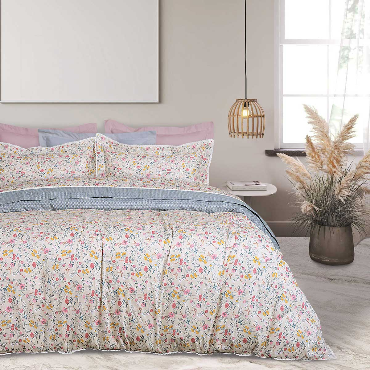 Σεντόνια υπέρδιπλα σε μπεζ χρώμα, με ροζ-γαλάζιες λεπτομέρειες και φλοράλ σχέδιο από την εταιρεία Das Home. Το ύφασμα είναι 100% βαμβακοσατέν 210 κλωστών που τα καθιστά απαλά και ανθεκτικά. Στο σετ περιλαμβάνονται οι μαξιλαροθήκες oxford, με το σχέδιο του πανωσέντονου. Συνδυάστε τα με τα υπόλοιπα είδη της ίδιας σειράς για ένα ολοκληρωμένο αποτέλεσμα στην κρεβατοκάμαρα σας.