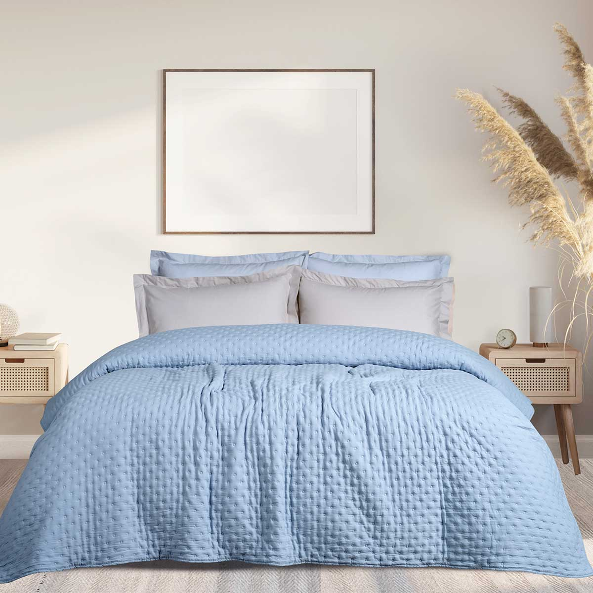 Κουβερλί υπέρδιπλο σε γαλάζιο χρώμα και ανάγλυφο σχέδιο από την εταιρία Das Home. Το εξωτερικό ύφασμα είναι από 100% microfiber που το καθιστά απαλό και ανθεκτικό, ενώ η γέμιση είναι από πολυεστερική βάτα. Δεν χρειάζεται σιδέρωμα. Ιδανικό καλοκαιρινό σκέπασμα.