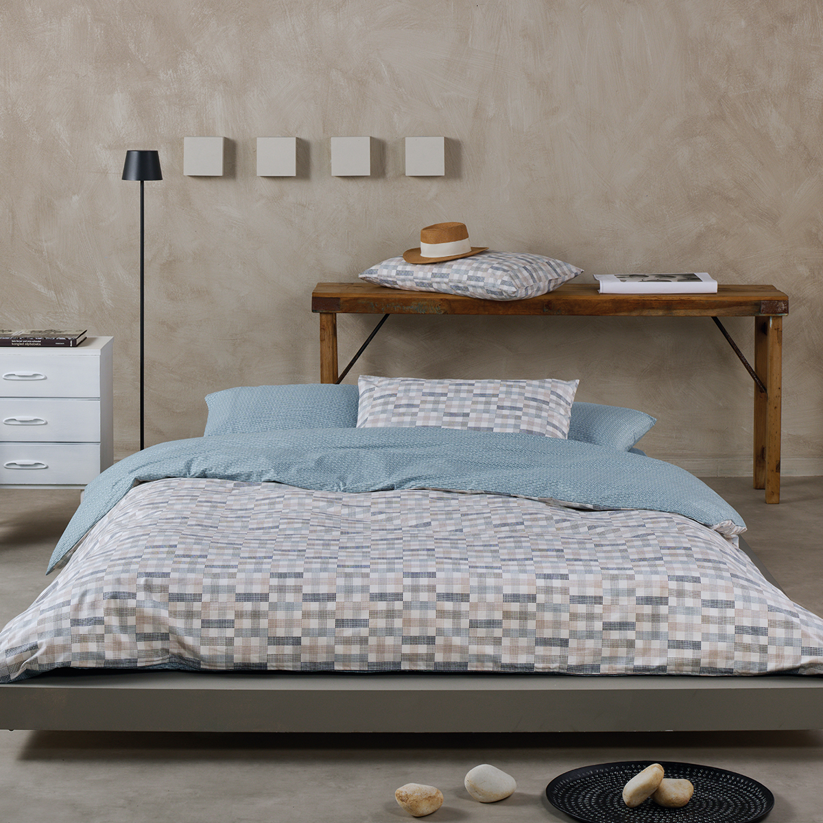 Παπλωματοθήκη ΚΟΜΒΟΣ Cotton Line Grey-Lilac Blue Μονόχρωμη με Φάσα Διπλή 200x240