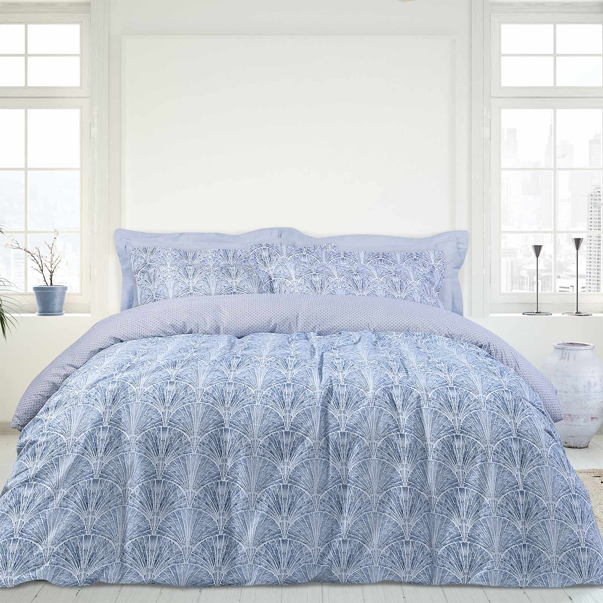 Σετ Σεντόνια Διπλά με Λάστιχο 4 Τεμαχίων ΚΟΜΒΟΣ Cotton Line Anthracite-Dolphin Blue 150x200+22